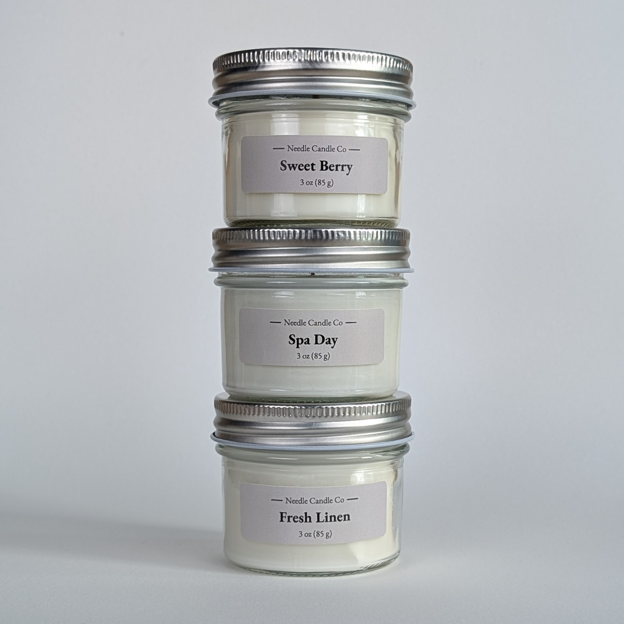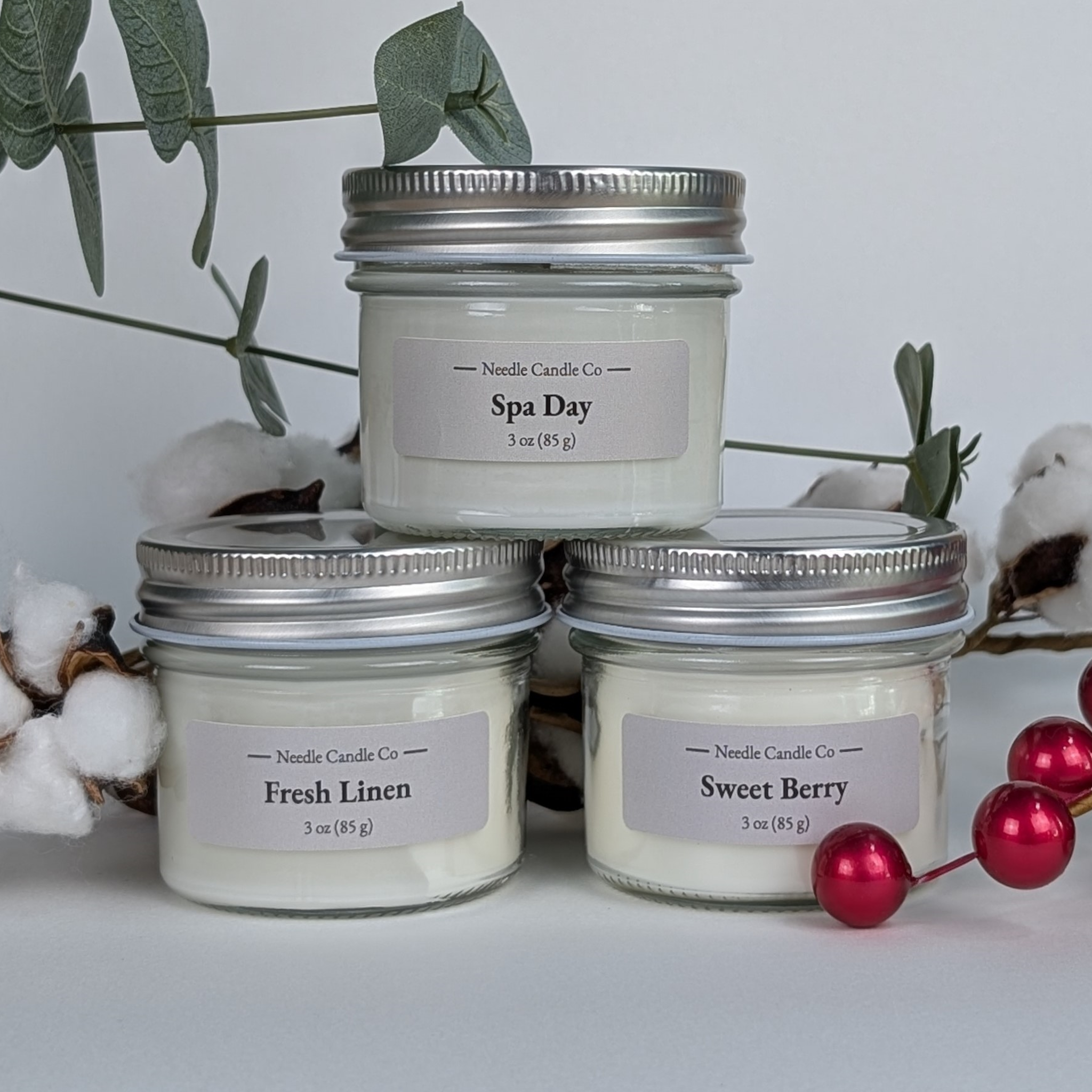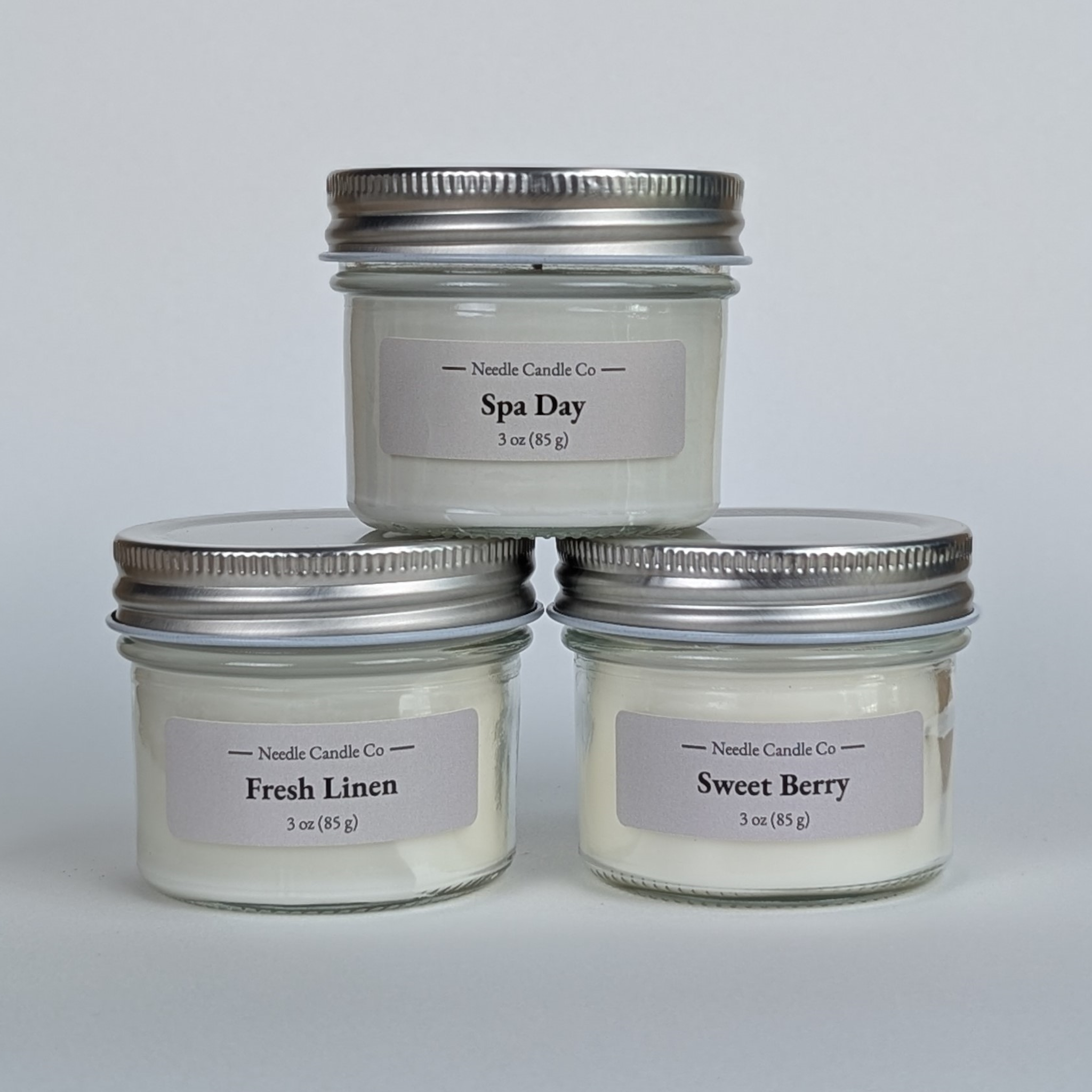 3 – 3 oz (85 g) candles | Spa Day, Sweet Berry, & Fresh Linen