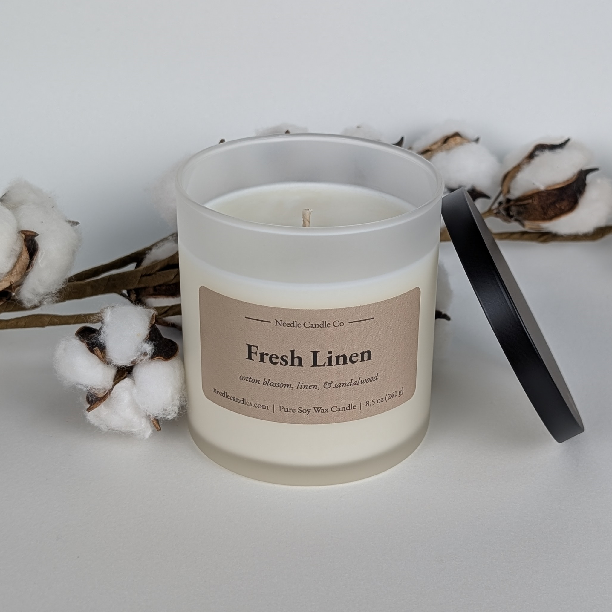 8.5 oz (241 g) candle | Cotton blossom, Linen, & Sandalwood