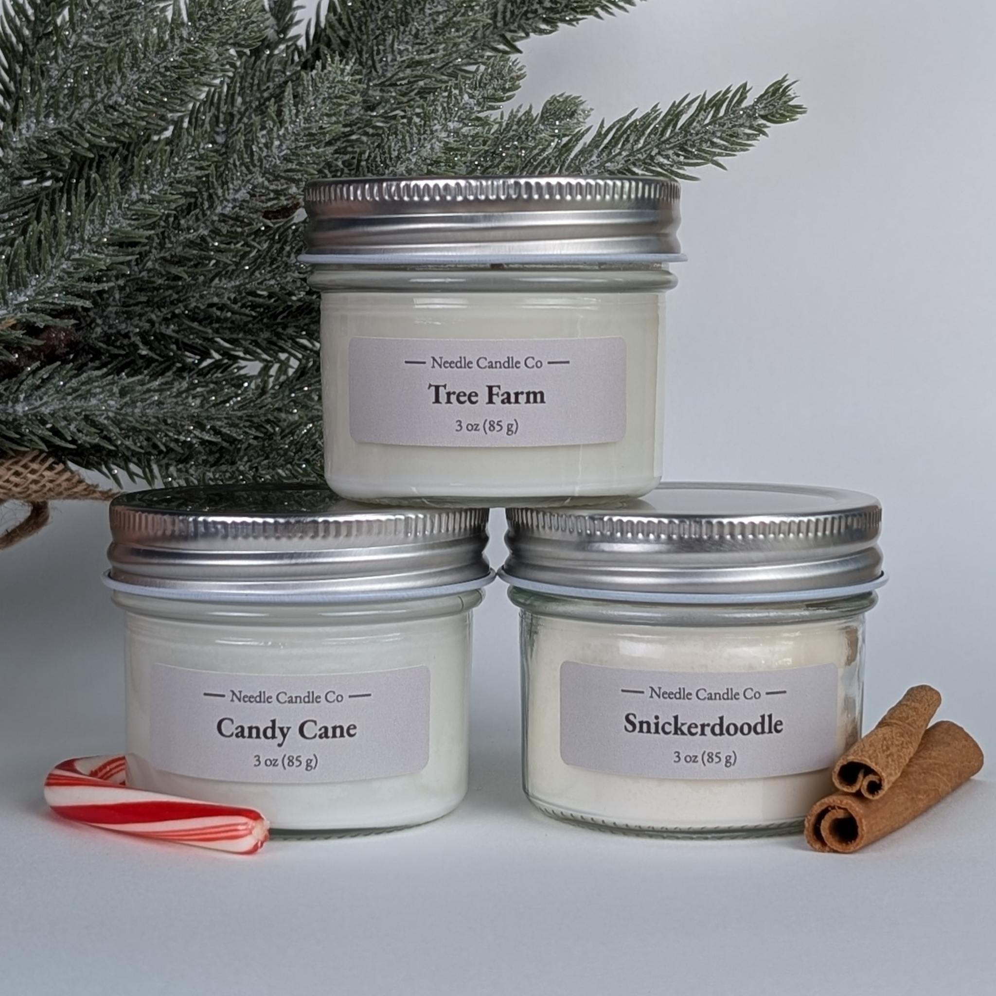 3 – 3 oz (85 g) candles | Tree Farm, Snickerdoodle, & Candy Cane